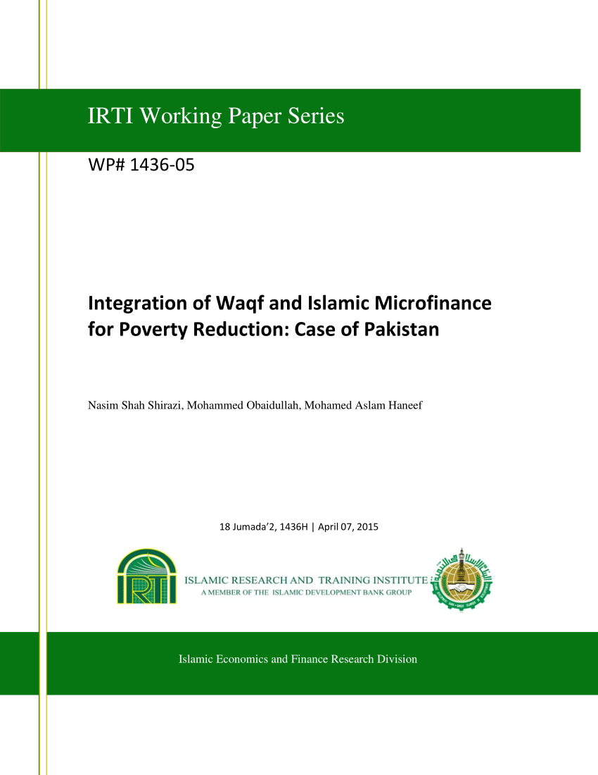 IRTI (2007). “Framework And Strategies For Development Of Islamic Microfinance Services”, Working paper for IFSD forum 2007 Islamic Microfinance Development: Challenges and Initiatives, Meridian President Hotel, Dakar; Senegal, May 27.